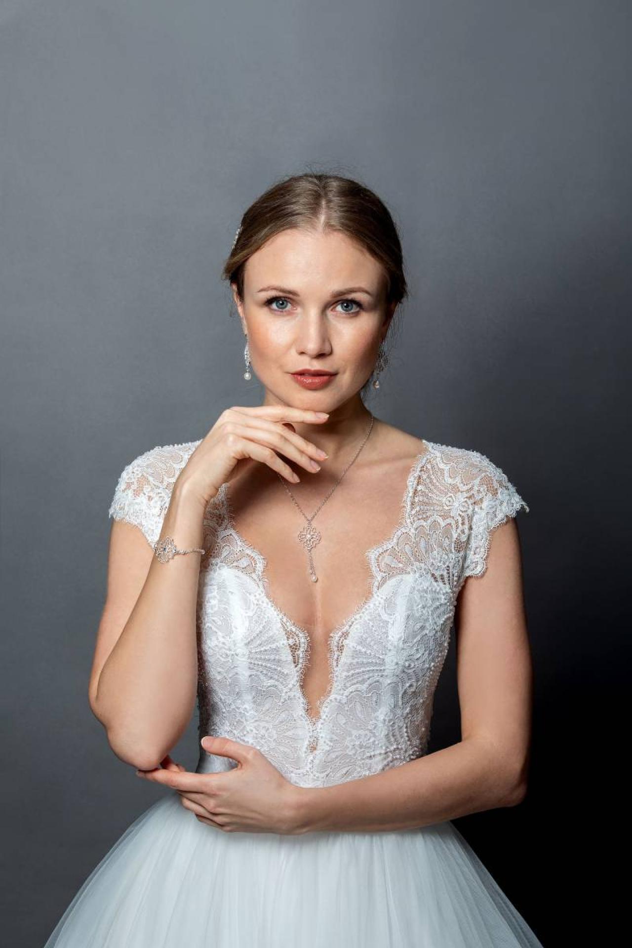 Pour accessoiriser votre robe de mariée collection Églantine Privé Créations référence Jessica : Nous vous proposons un grand choix d'accessoires voile sur mesure en dentelle de Calais dans le même coloris que votre robe de mariée Eglantine Marseille 13006.