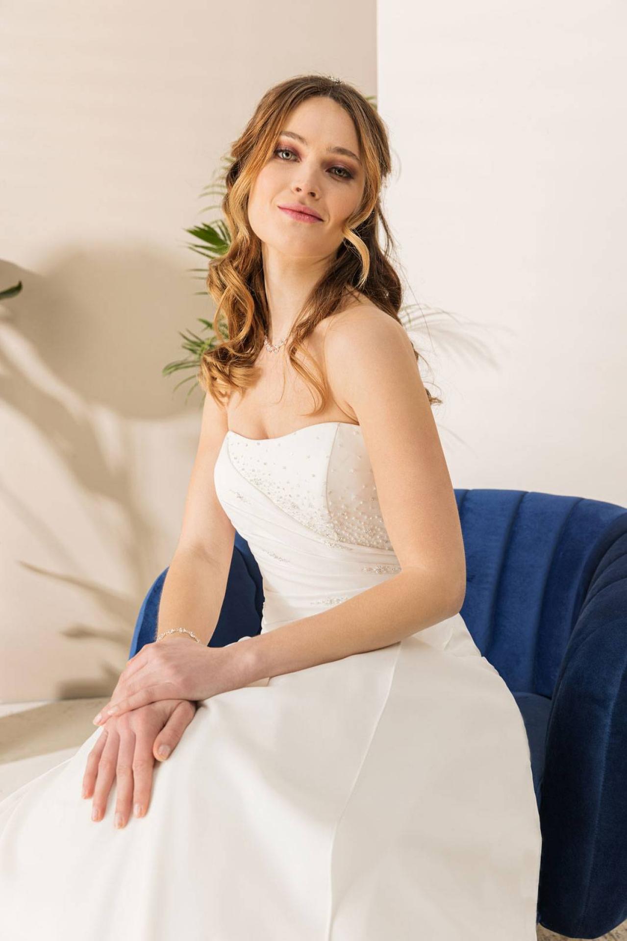 Robe fluide de Mariée Atlanta de la nouvelle collection Églantine Créations mariages et cérémonies saison 2023 disponible dans notre showroom Églantine à au 74 rue Breteuil Marseille centre ville .
