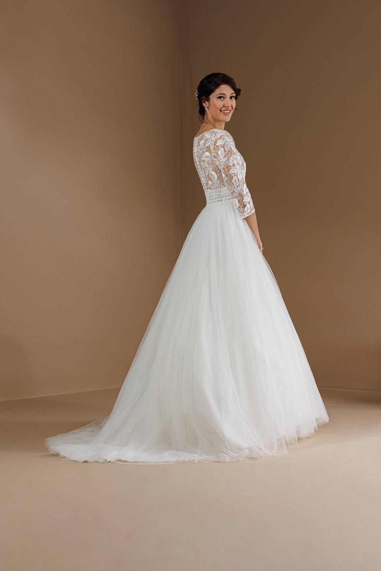 La solution pour modifier votre robe de cérémonie de mariage: vous souhaitiez apporter des transformations couture selon vos envies sur votre robe de mariée trapèze chic de la collection Églantine, c'est possible ! Dans nos ateliers sur place sur Marseille, après validation par la responsable couture et acceptation du devis des transformations.
