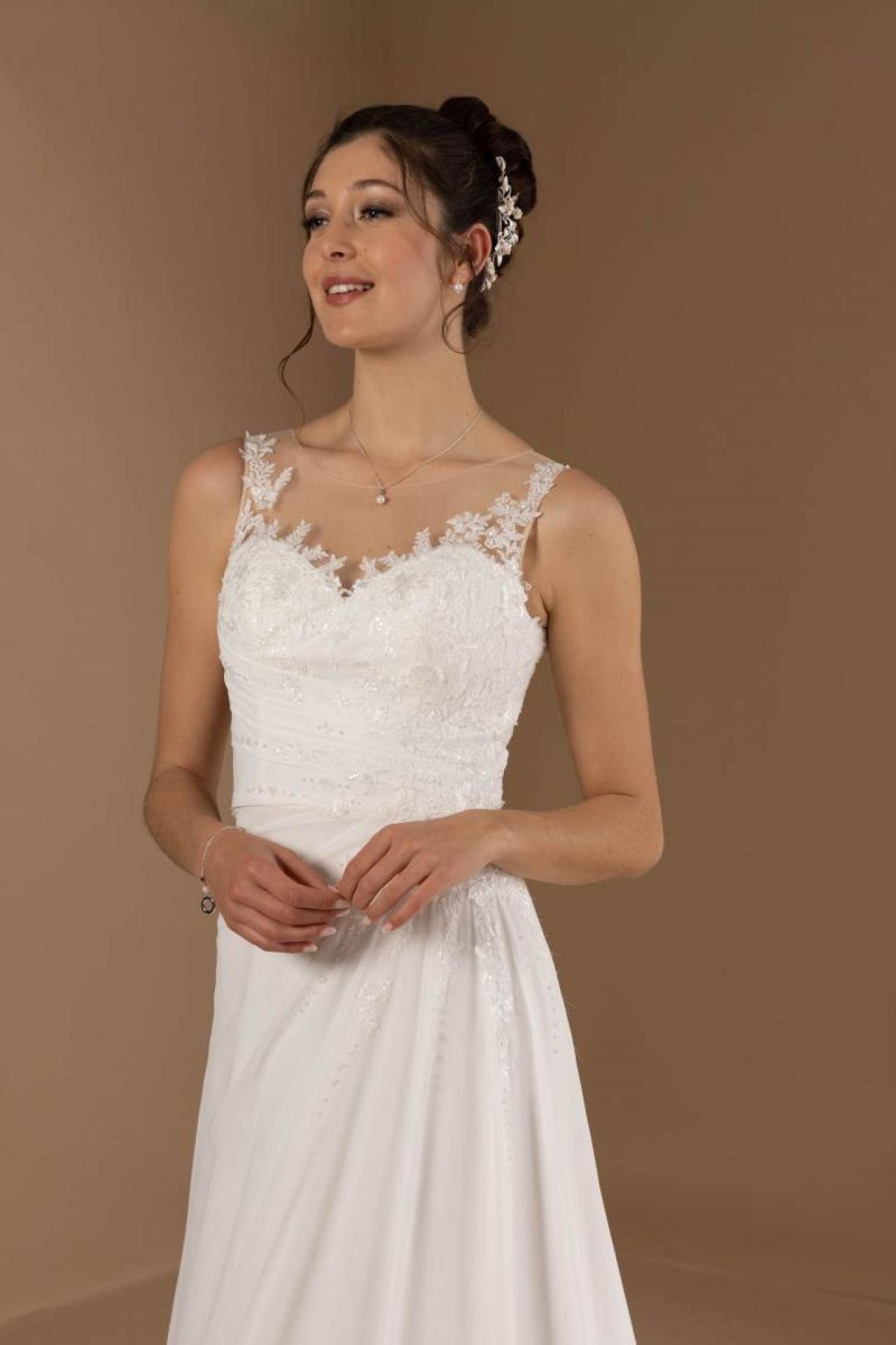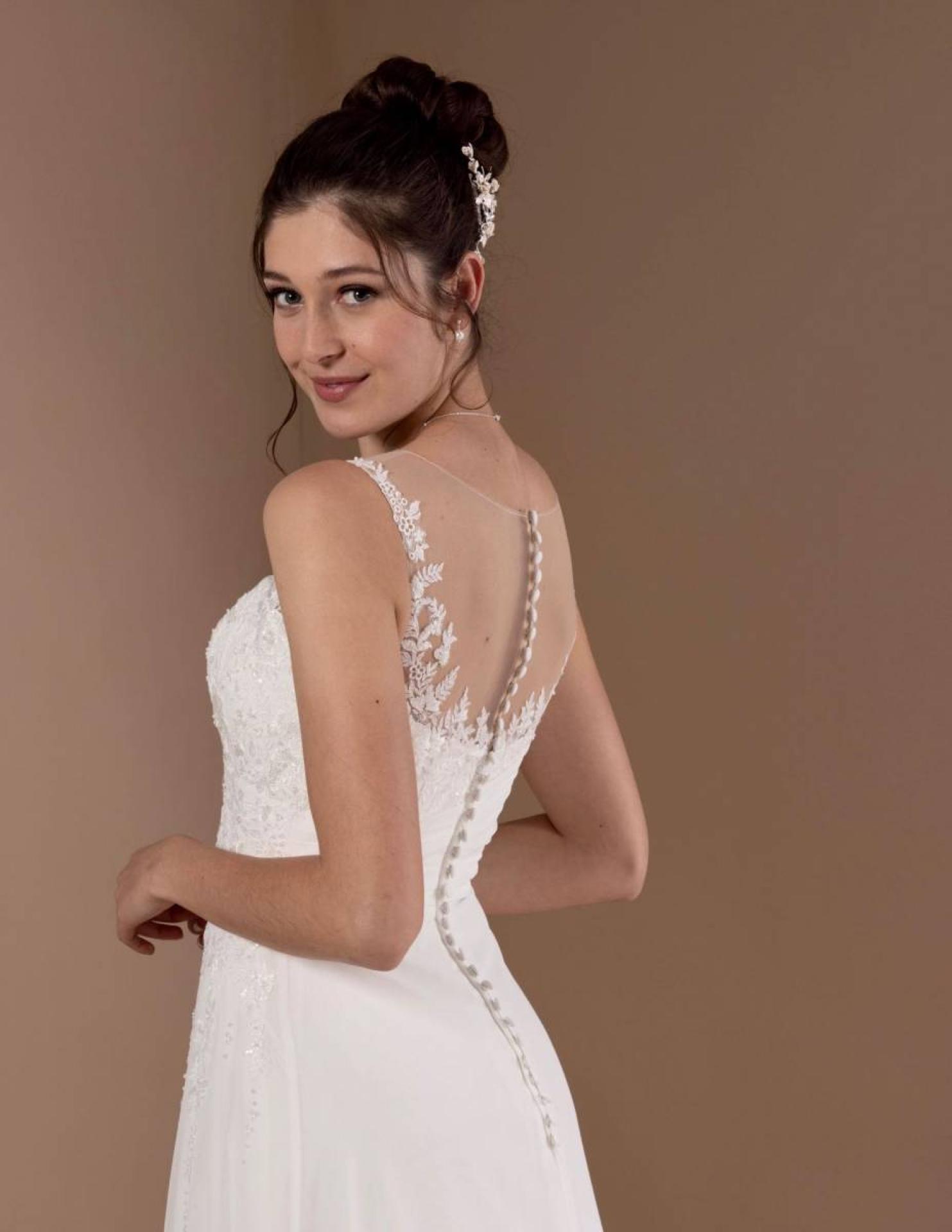 Robe bustier Grenade pour votre mariage simple forme de robes de mariée droite decoleté coeur églantine Marseille.