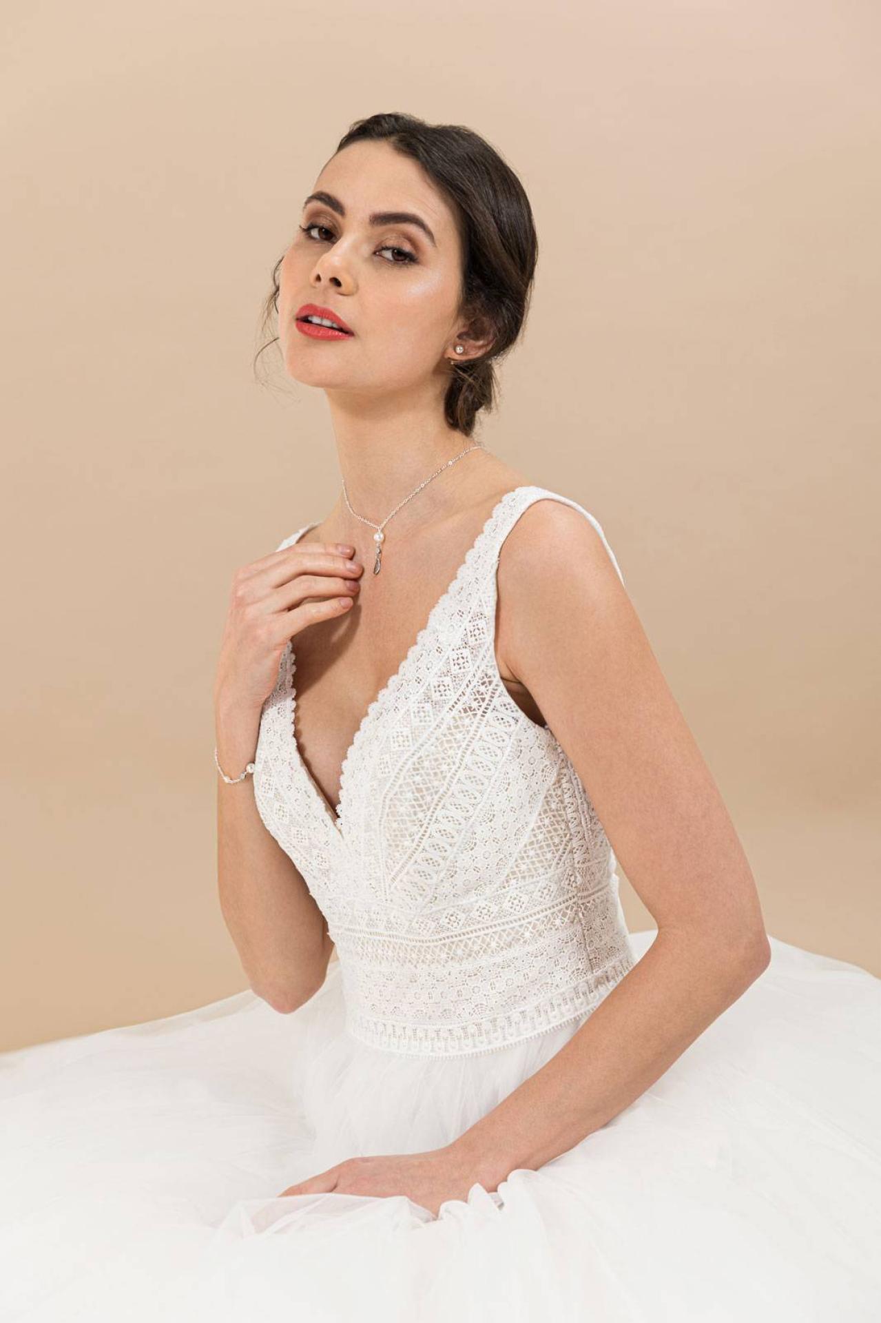 Pour accessoiriser votre robe de mariée PRIVÉE ÉGLANTINE Créations référence Swing : Nous vous proposons un grand choix d'accessoires voiles longs en dentelle bourdonnée dans le même coloris que votre robe de mariée Eglantine Marseille.