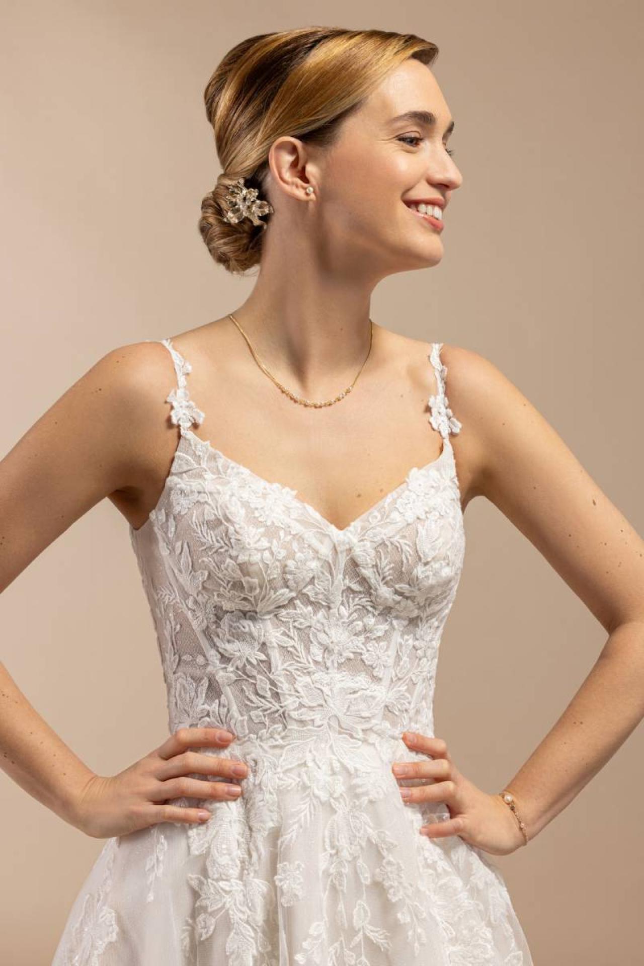 Forfait retouches inclus : Épinglage, mise à mesure, ajustement des côtés du corset, ourlet, pose du lien de traîne… Toutes les retouches sont réalisées dans l’atelier sur place pour une adaptation parfaite à votre morphologie.