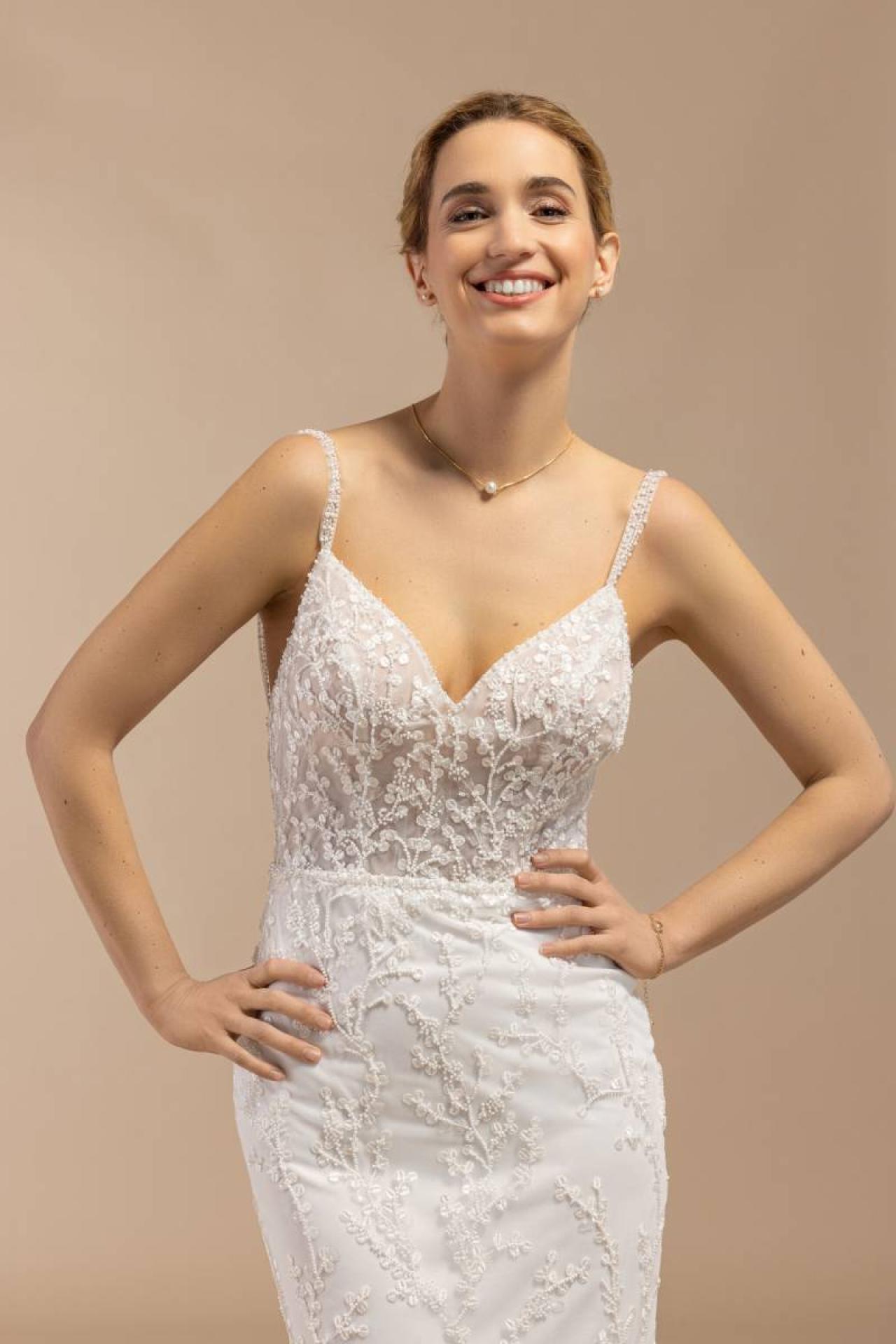 Coupe sirène envoûtante : Le modèle Broderie épouse les formes jusqu’aux genoux puis s’évase pour offrir une allure sensuelle et élégante, parfaite pour magnifier chaque morphologie.
