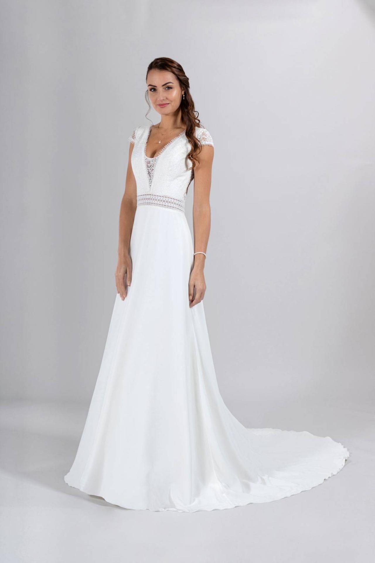 Dans nos ateliers de retouches de robes de mariée sur Marseille, après acceptation technique et devis des transformations sur mesures par la responsable couture . La meilleure solution pour personnaliser et customiser votre robe de mariée : vous souhaitiez apporter des transformations couture selon vos envies sur votre robe de mariée trapèze chic de la collection Églantine, c'est donc possible , il suffit de demander !