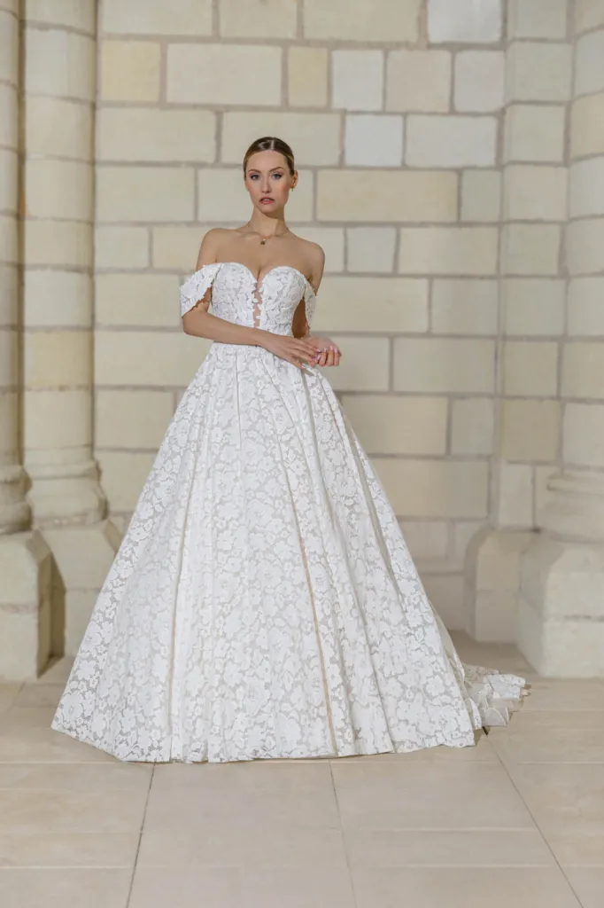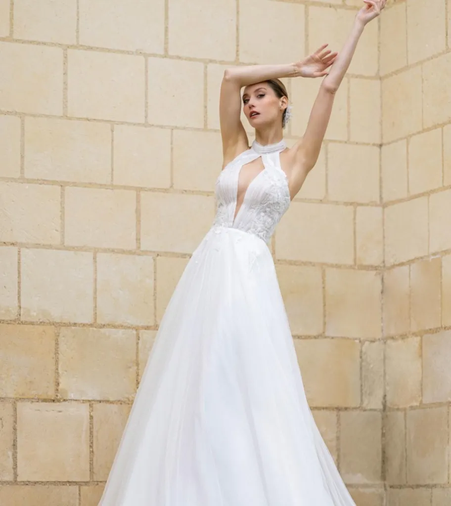 Symbole de romantisme, la robe de mariée princesse signée Églantine by Anthea N’DRI séduit par son volume majestueux et ses finitions soignées. Chaque création met en valeur la silhouette tout en offrant une allure gracieuse et intemporelle, parfaite pour un mariage de conte de fées.